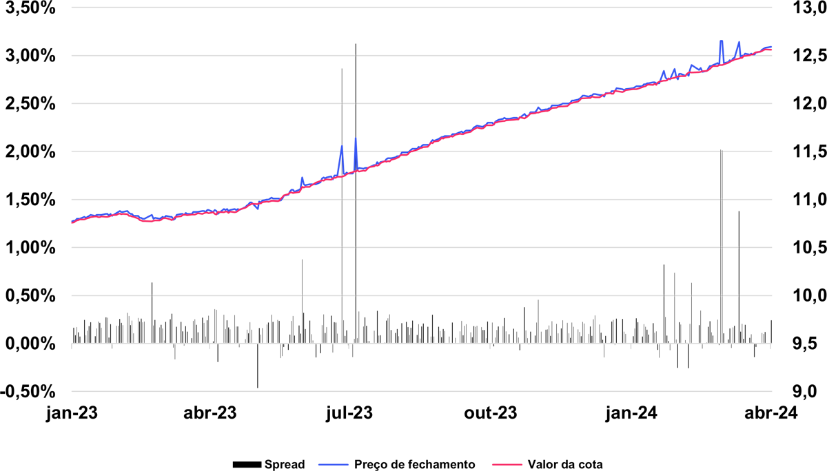 Spread entre o preço de fechamento e o valor patrimonial da cota