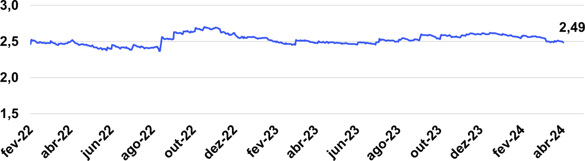 Dados considerando valores entre janeiro de 2022 ao primeiro dia útil de abril de 2024.