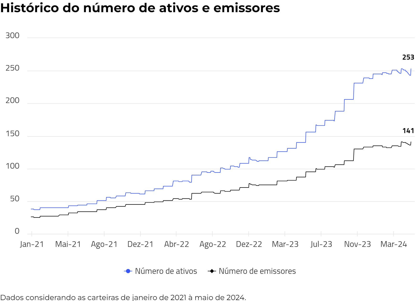 O volume de emissão médio da carteira está em R$ 935 milhões, com um volume de emissão total de R$ 231 bilhões.