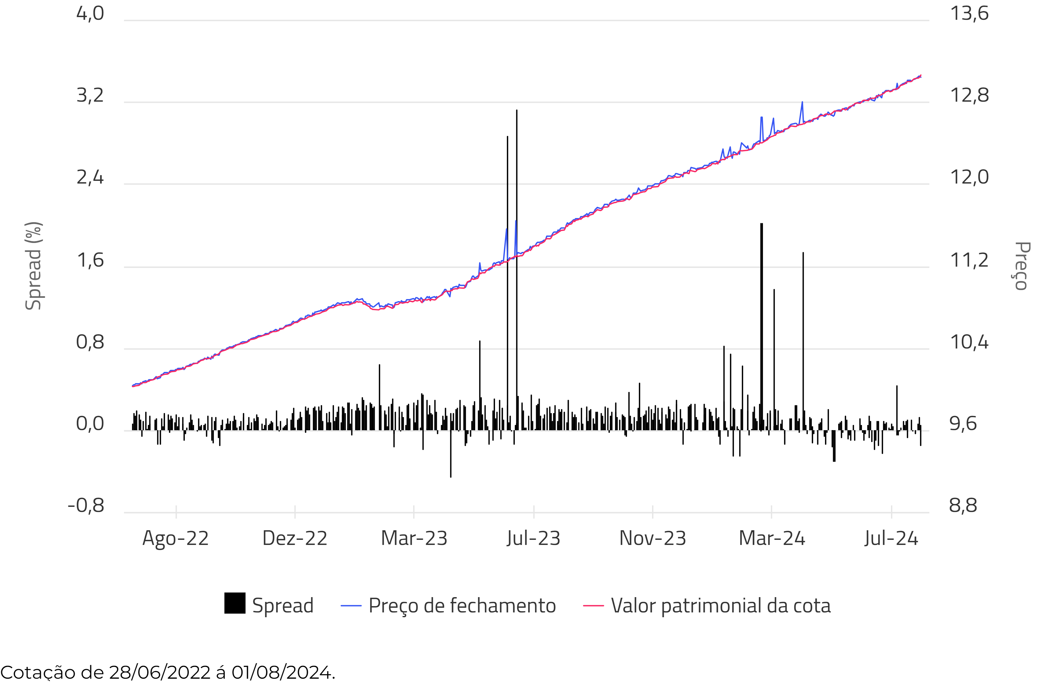 Spread entre o preço de fechamento e o valor patrimonial da cota