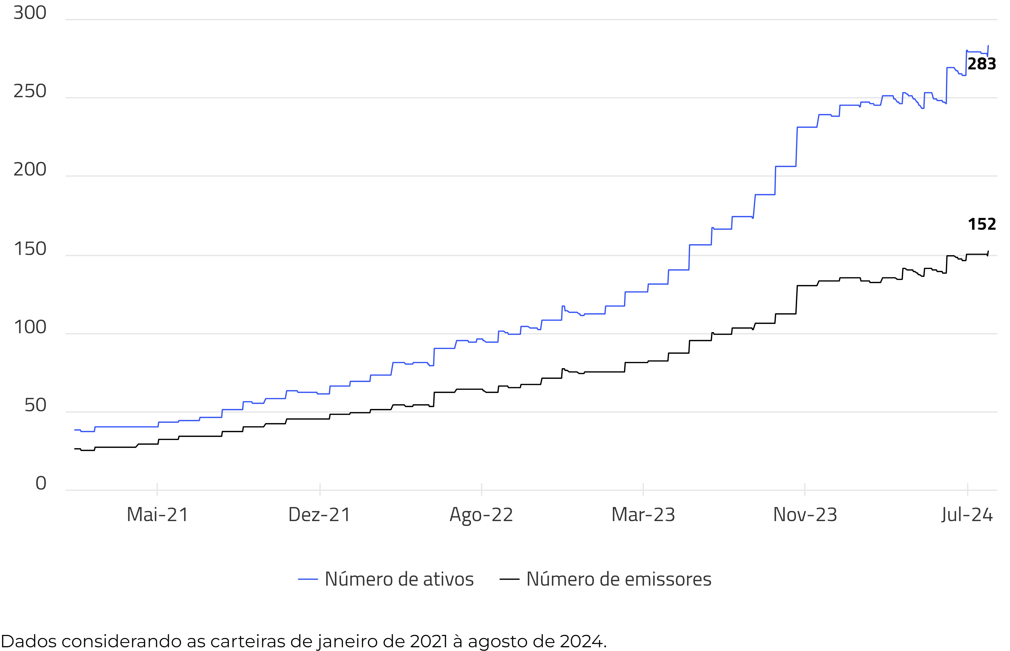 Histórico do número de ativos e emissores