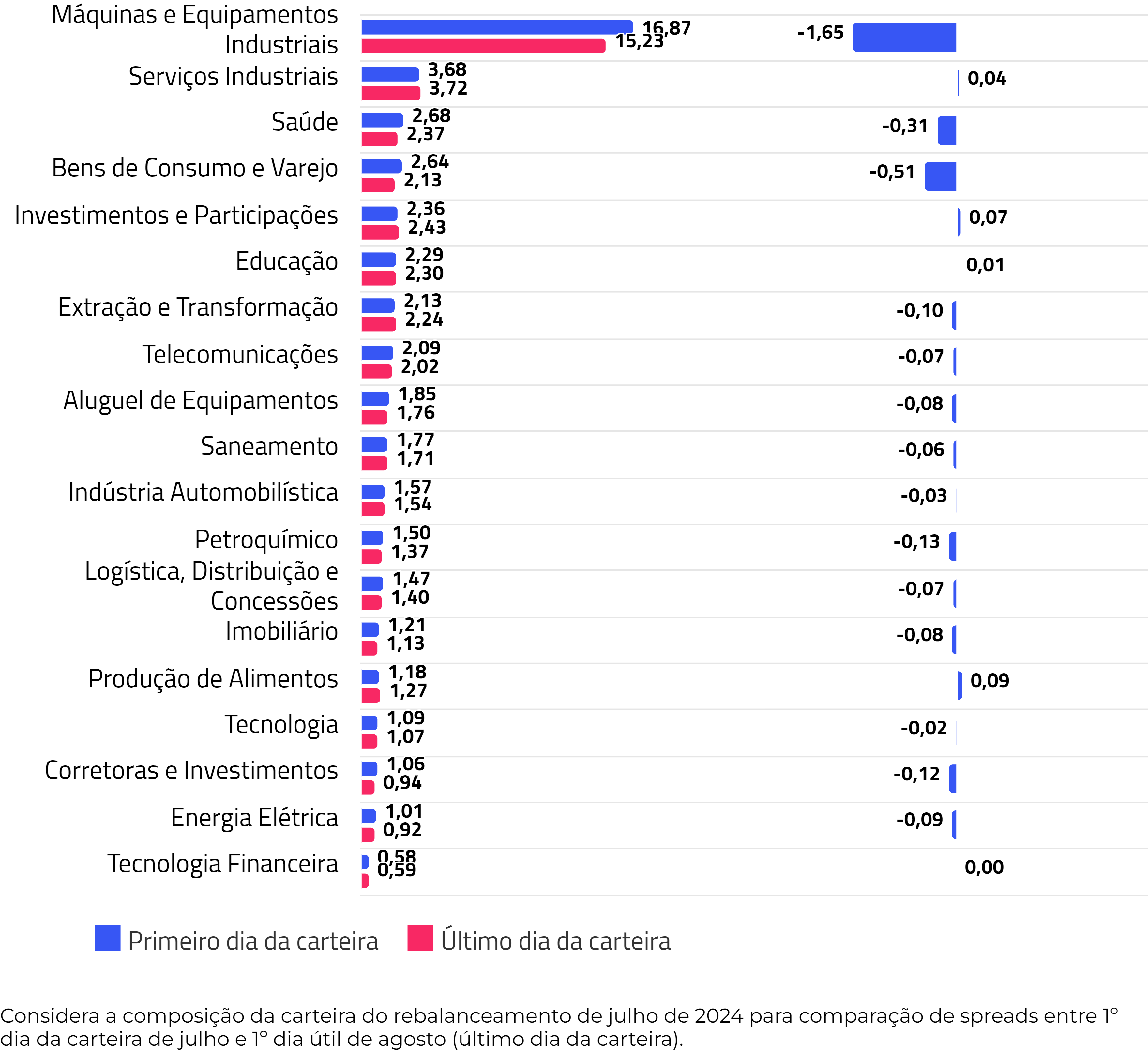 Spreads de carrego por setor (%) e variação dos spreads (p.p.)