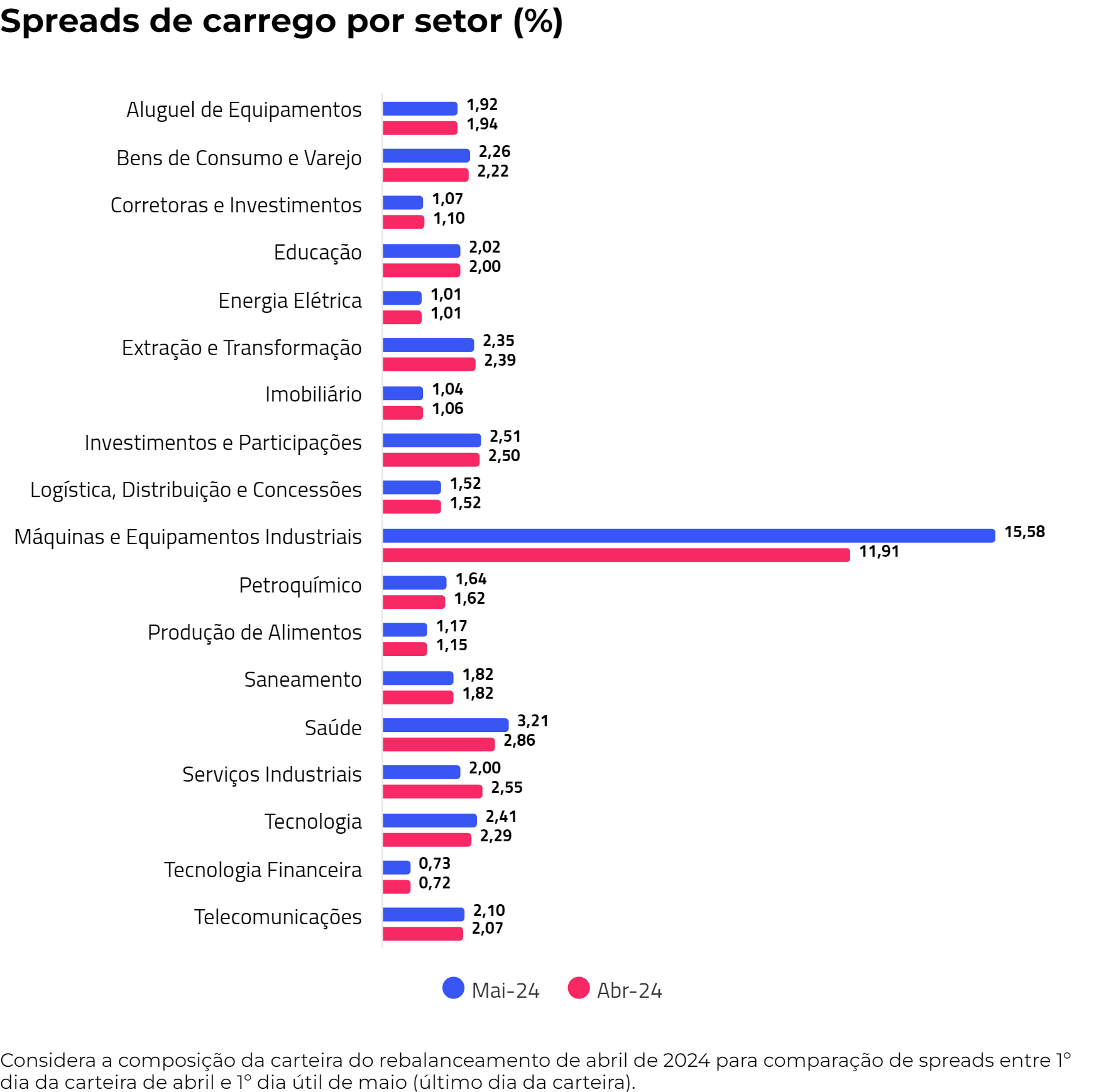 Em contrapartida, o aumento do spread da carteira pode ser atribuído, predominantemente, ao aumento dos spreads do setor de Máquinas e Equipamentos Industriais, de 3,56 p.p.