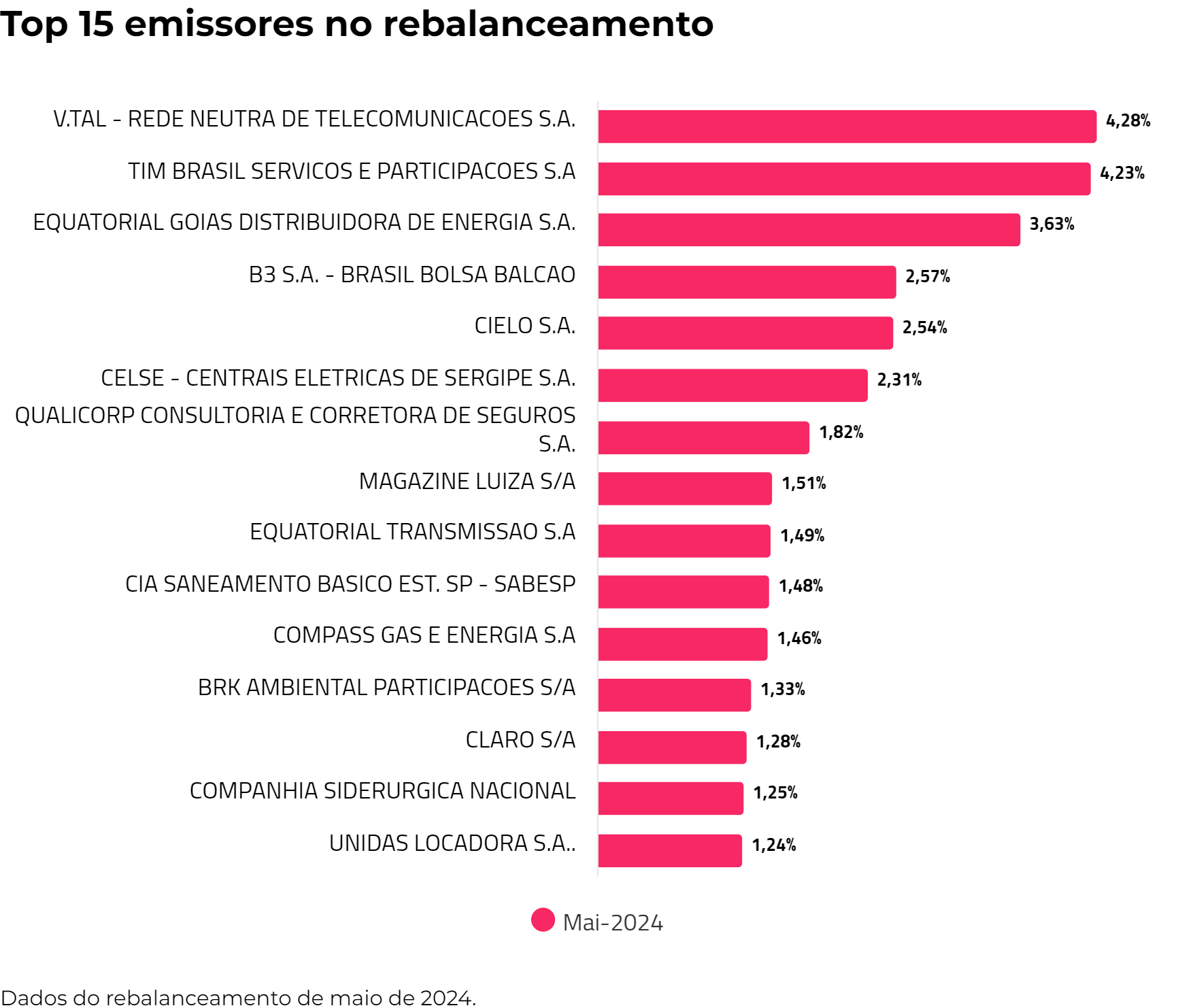 | BTEL12 | V.TAL - REDE NEUTRA DE TELECOMUNICACOES S.A. | 2,3% |
